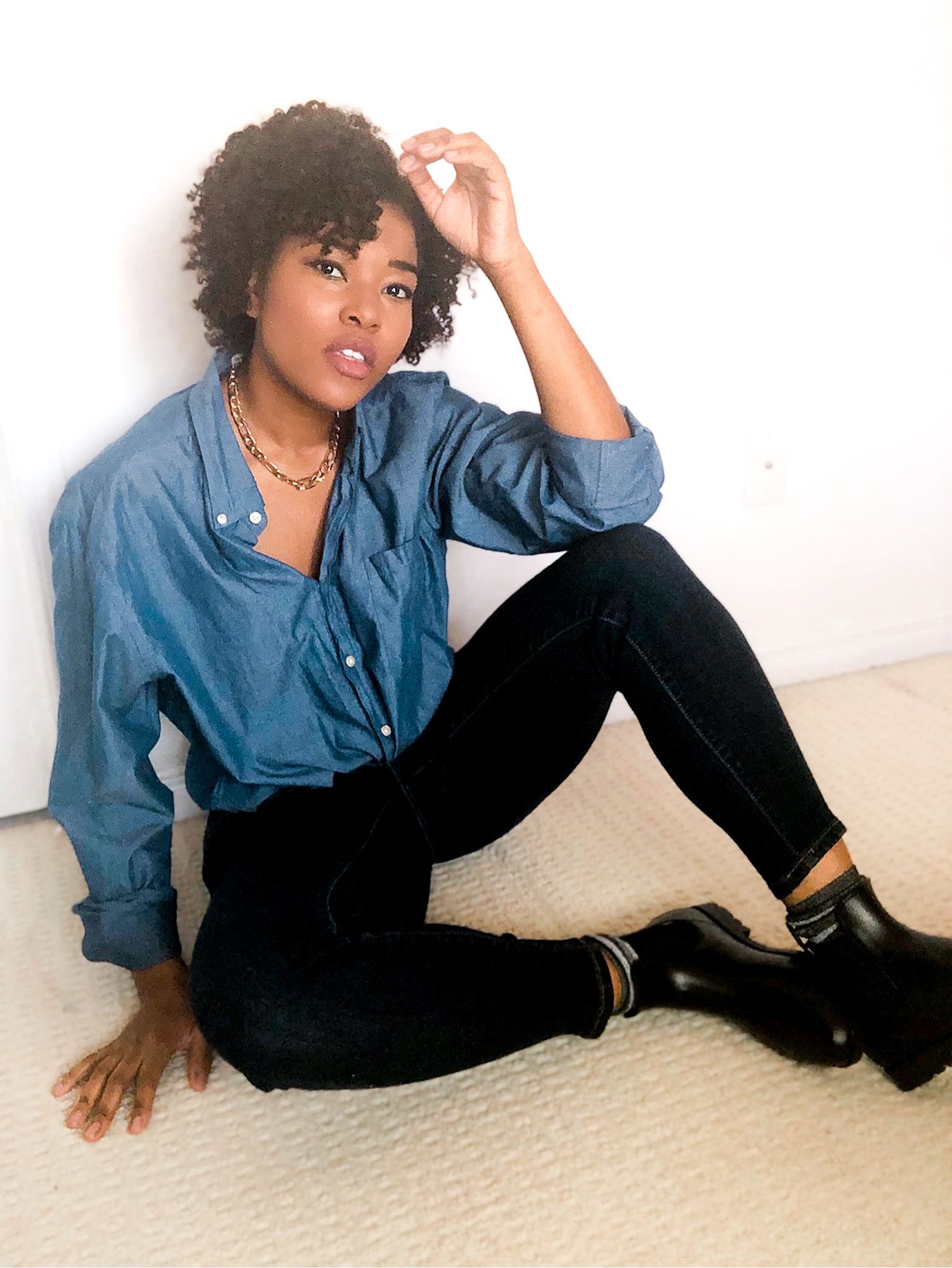 For starters, I want to set the record straight. In the spirit of honesty, I borrowed this denim shirt from my husband’s closet. He doesn’t know yet, and the plan is to keep it that way.