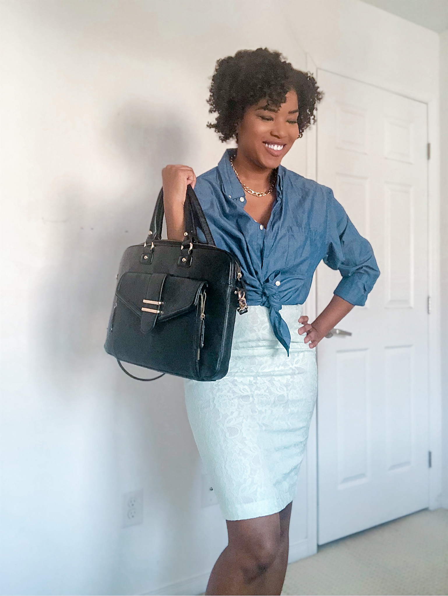 I fell in love with wearing my husband’s shirt when I was pregnant with my firstborn daughter. I gained quite a bit of weight and I was unprepared, so his closet offered me all the room I needed to grow but with the improper fit. Today, with the help of so many online stylist I know that I can cinch the shirt at the waist by tying a knot in the middle, it gives a false illusion of the hour glass figure. Also it looks like I’m dressing with a baggy shirt on top on purpose in a stylish way that looks cute.