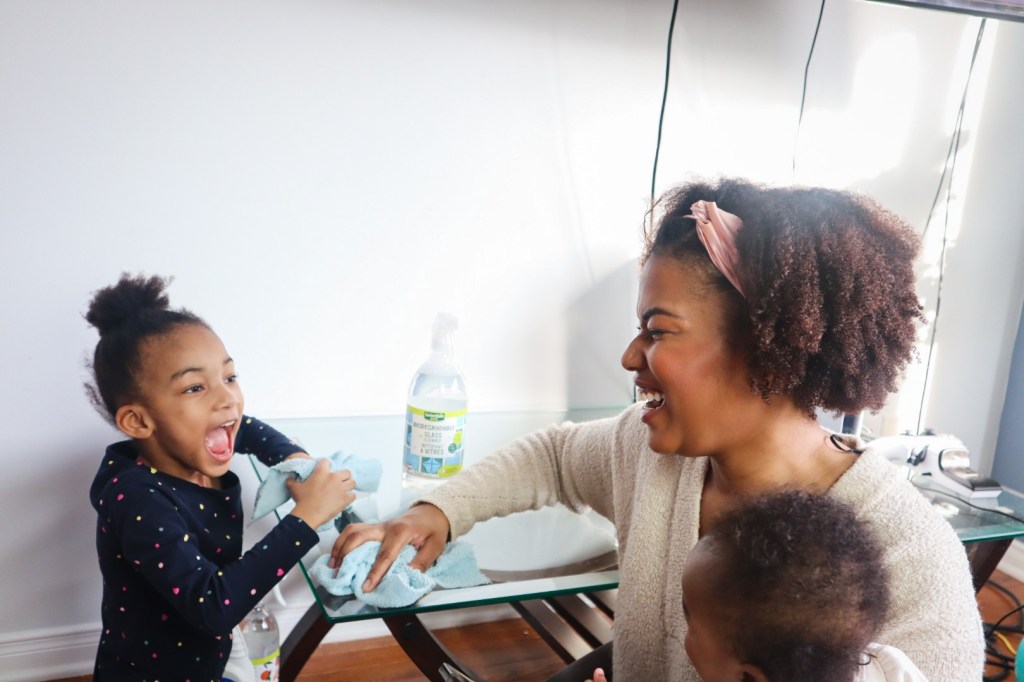 Put on some music and give them a wet rag. Watch them help you as best as they can.