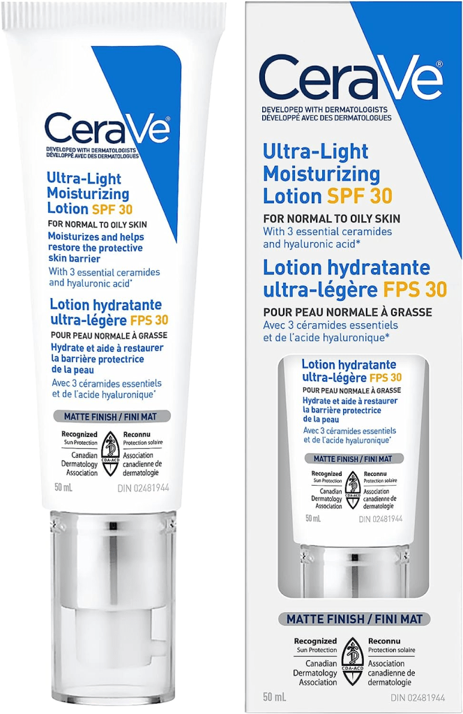 CeraVe Ultra-Light Moisturizing Lotion SPF 30 offers a winning combination of hydration and sun protection in a lightweight, non-greasy formula. Infused with ceramides, hyaluronic acid, and SPF 30, this multitasking moisturizer absorbs quickly, leaving the skin feeling soft, smooth, and adequately moisturized throughout the day. Its broad-spectrum sun protection ensures defense against harmful UVA and UVB rays, making it an ideal choice for daily wear. Affordable and suitable for all skin types, this lotion is a must-have addition to any skincare routine for those seeking hydration and sun protection without compromise.