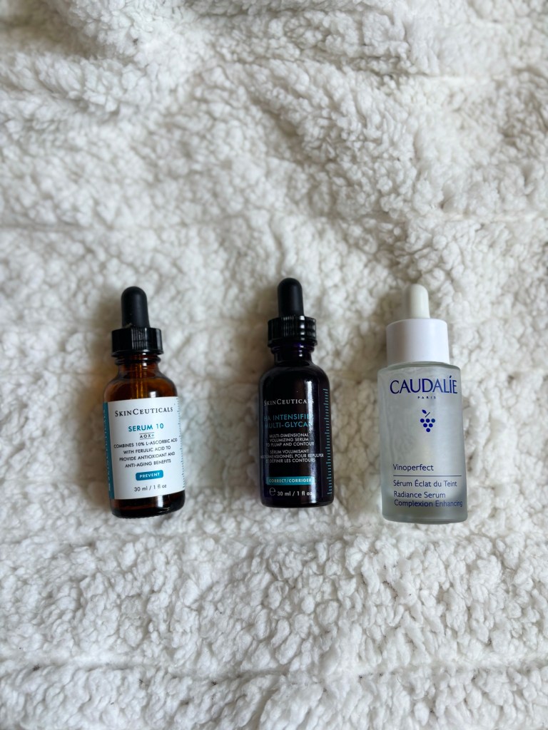 SkinCeuticals Serum 10 AOX+ was a bit spicy on my skin — not for sensitive days. SkinCeuticals H.A. Intensifier plumped and smoothed beautifully. Caudalie Vinoperfect Radiance Serum gave me gentle brightening, especially when my skin was delicate.